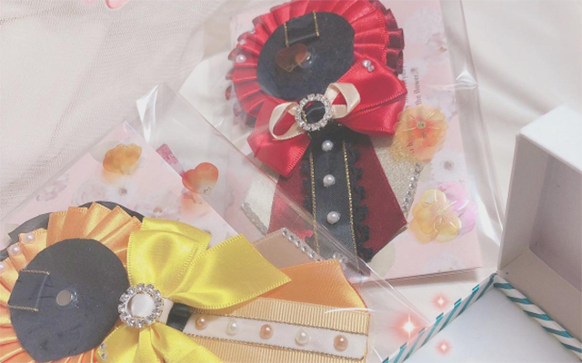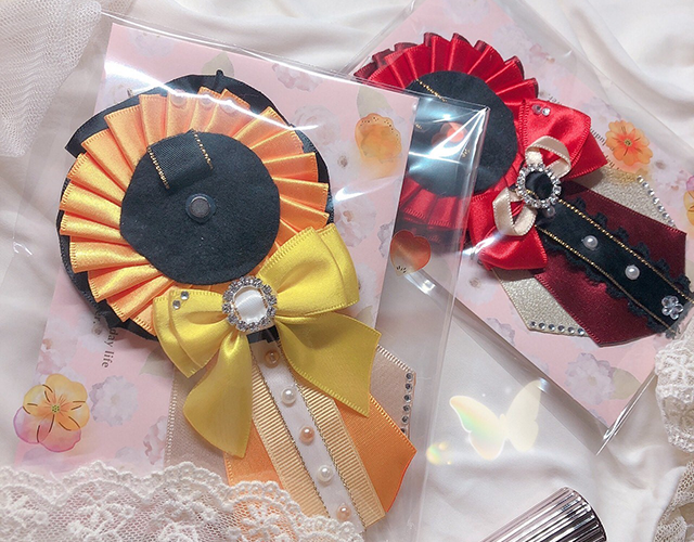 そんなロゼットをGROW UPでは制作しています。お客様の缶バッジの画像やキャラからインスピレーションを得て制作に入りますので、どこにもないオンリーワンのロゼットが出来上がります♪
